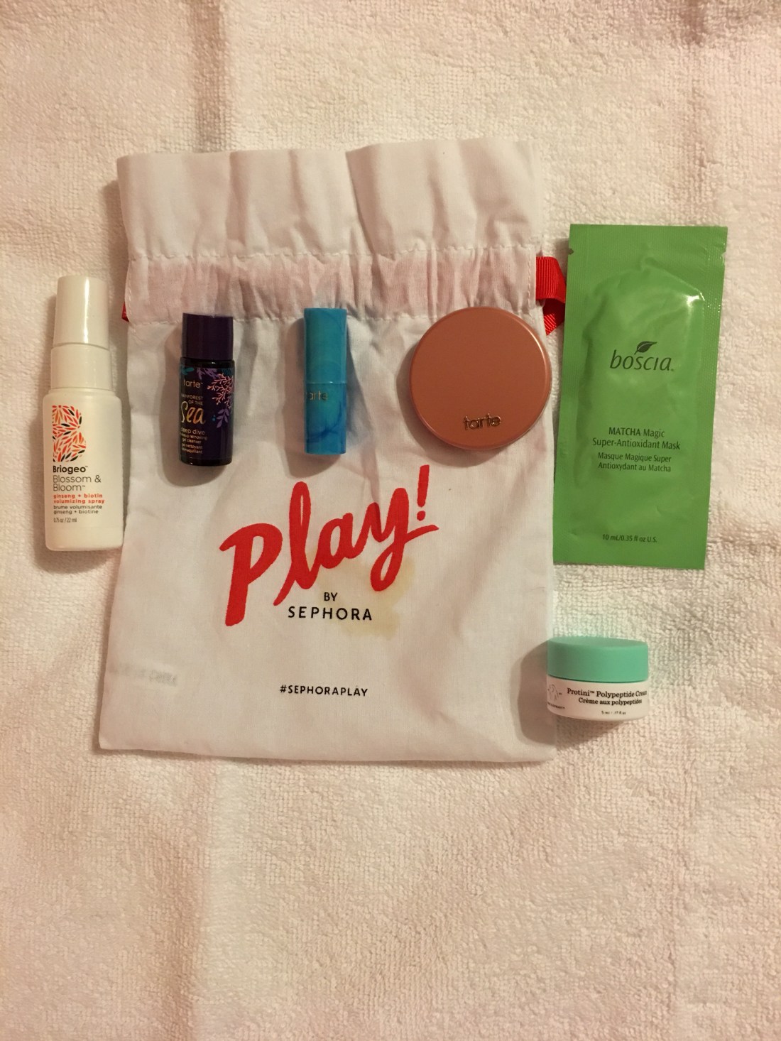 I received my Sephora Play! box this week! I love that it had plenty of Tarte products in it!!! They are one of my favorites!!!