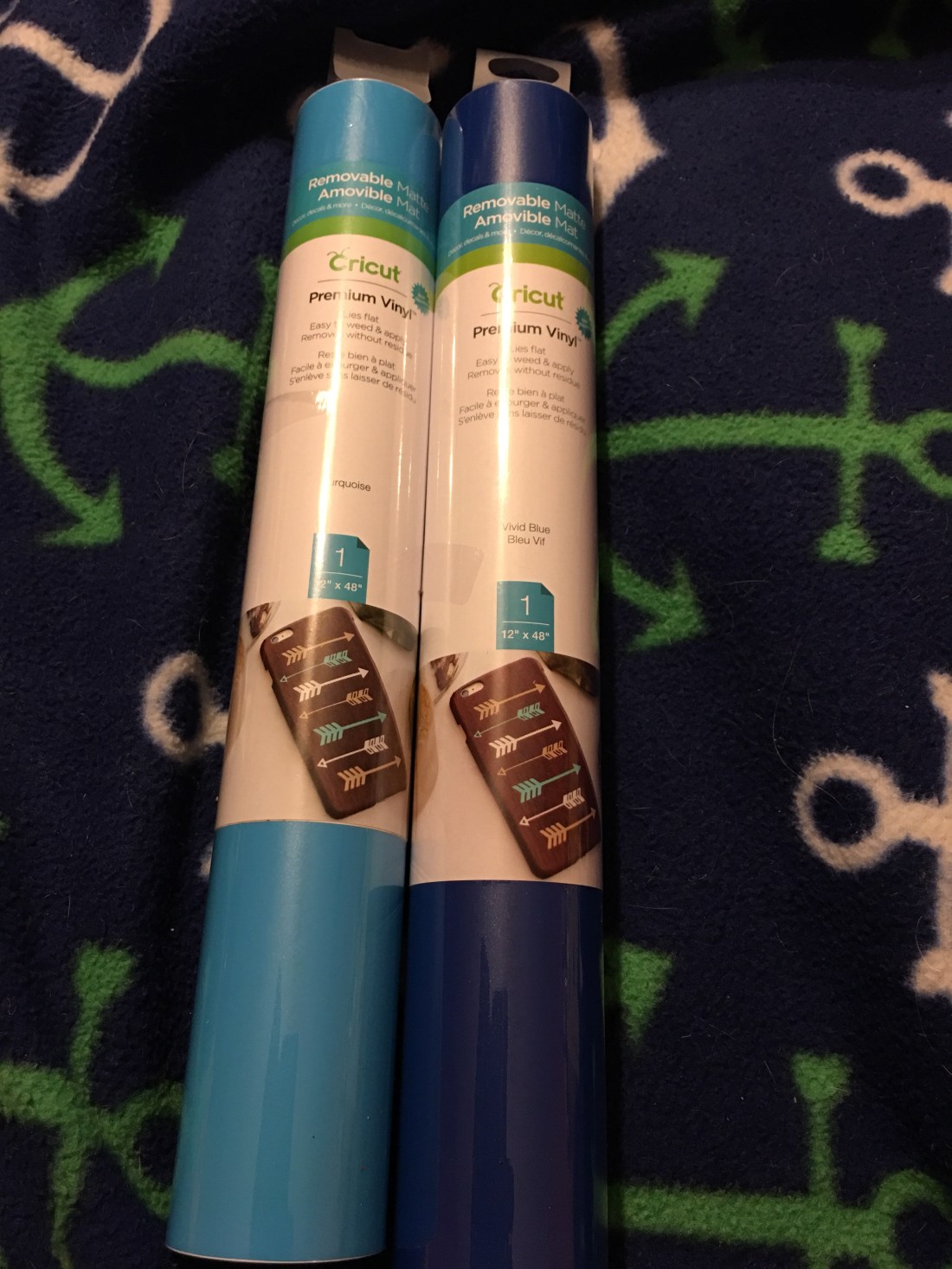 While I was out running errands, I made a stop at Michaels to look at their vinyl selections. I must have timed it right as their vinyl was on sale!!! I purchased a few colors of the removable vinyl and the transfer tape plus a couple of often things. I can’t wait to experiment with an idea for our tumblers I plan on decorating for our cruise on the Carnival Vista.