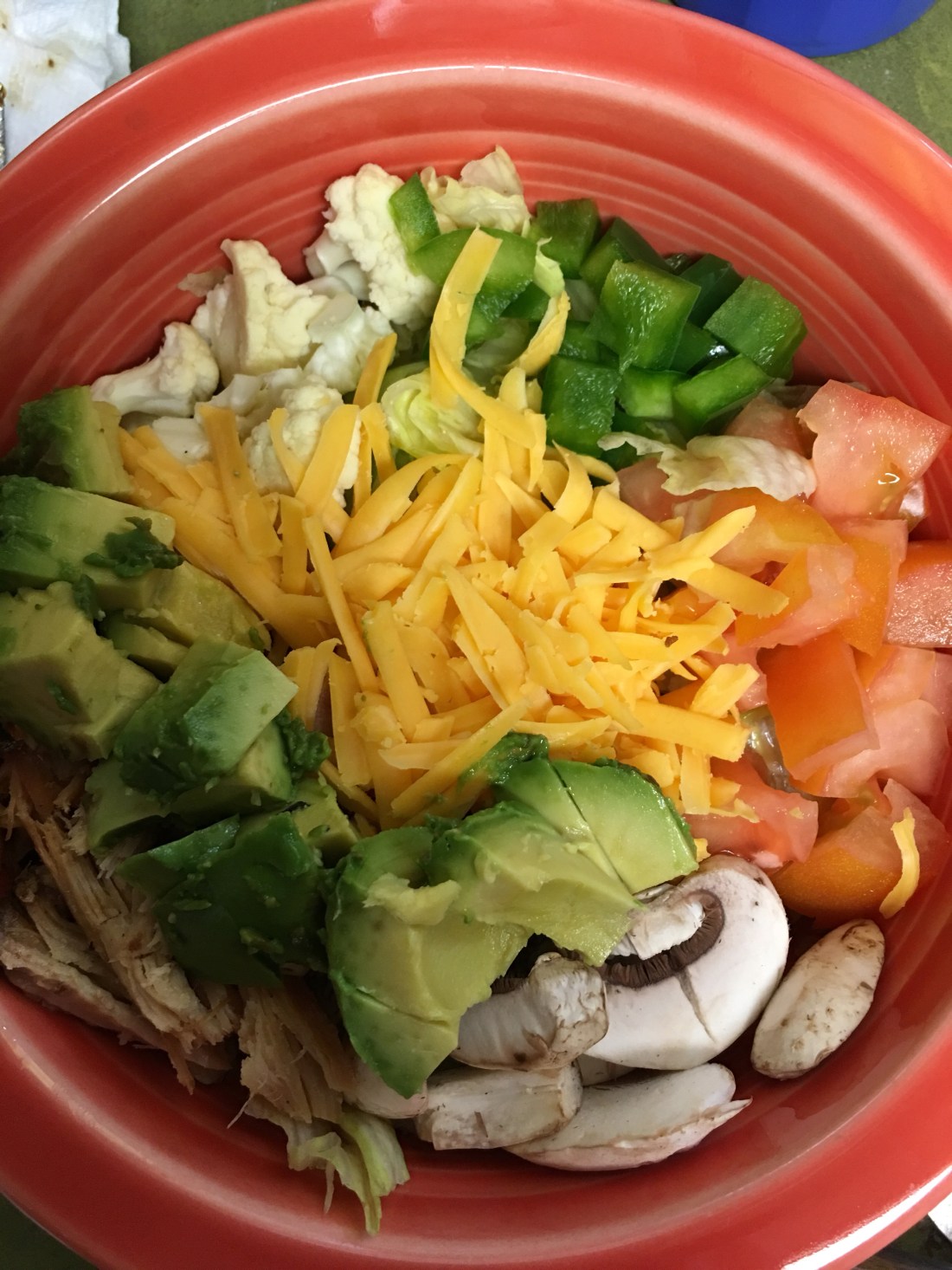 This evening I made me a salad with all kinds of goodies in it and I maybe had half of it.