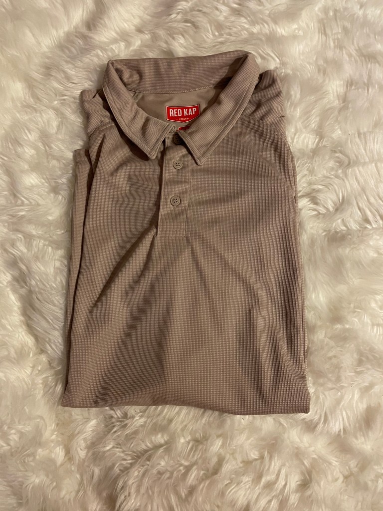 Red Kap mens standard active performance polo shirt, tan.