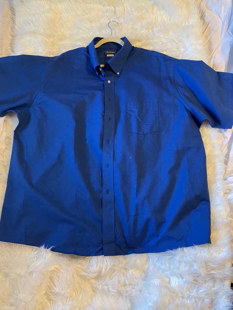Van Heusen mens short sleeve oxford dress shirt, english blue.