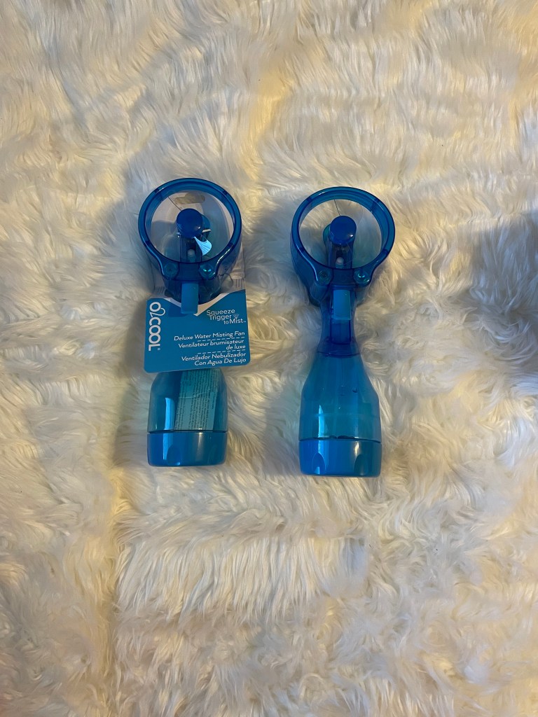 O2COOL deluxe handheld battery operated misting fan, light blue (FML0001). Sold by MoveAbility Brands.