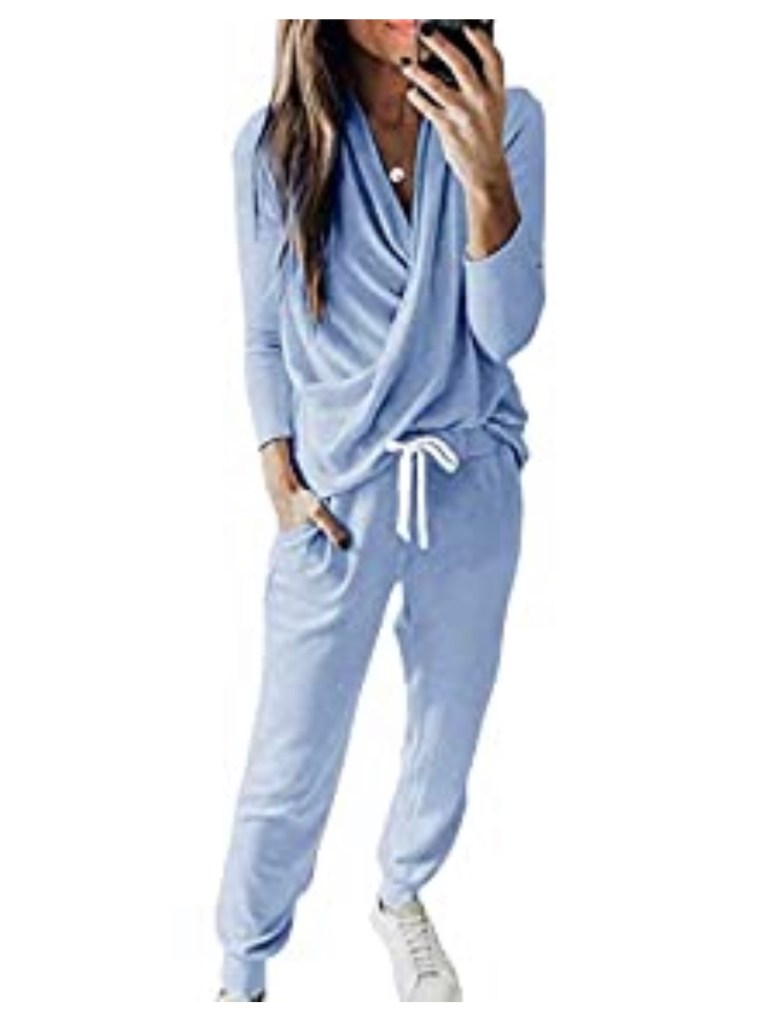 The second sweatsuit/loungewear is also in blue and is more of a loose fit. And it is so comfortable. Seller: LYHNMW