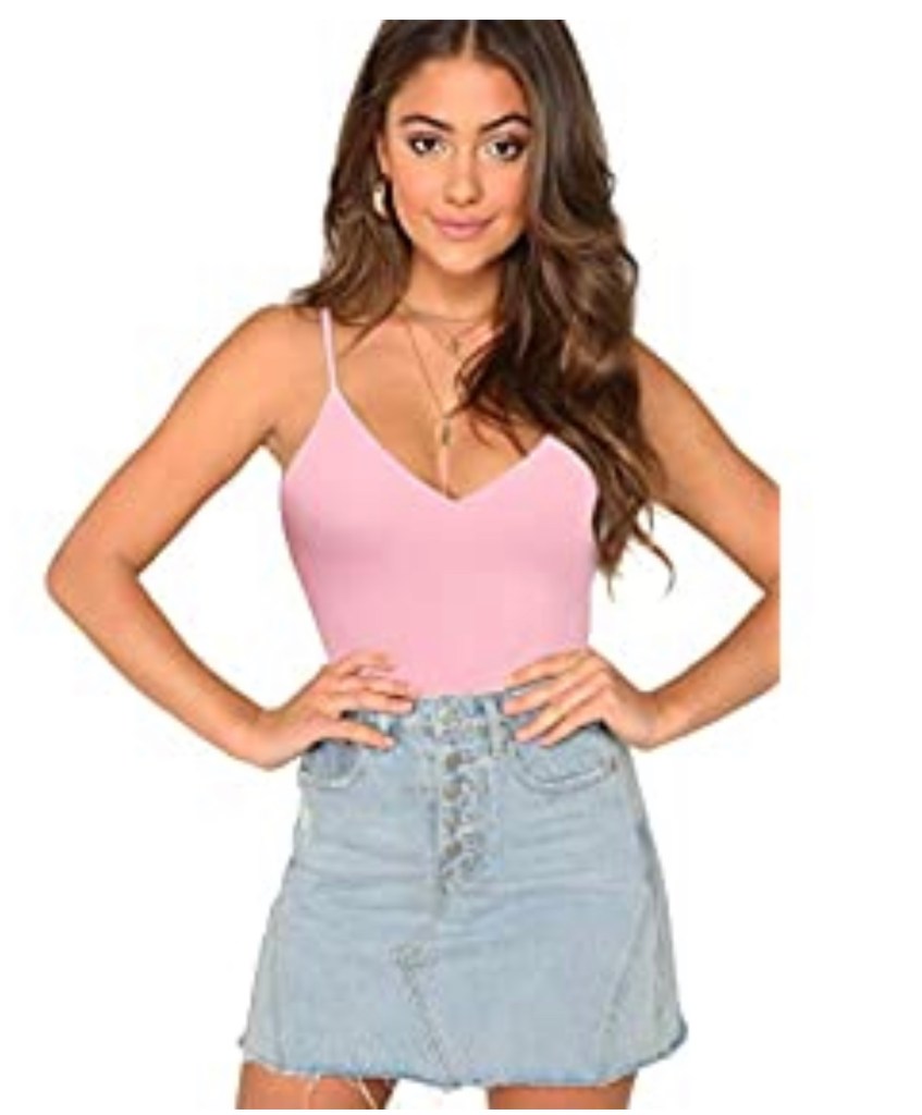 I found what I hope will be the perfect cami to wear under my pink top. It is pink in color so I do not think it will stick out as much as a white cami would. Seller: Shein online store.