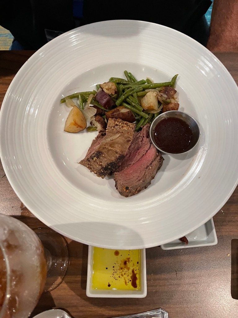 Jim and I decided to skip going to the main dining room for dinner. Instead, we decided on going to the Lido Marketplace. They had the same offerings as the main dining room but we did not have to check in thru the HUB app to be seated. We actually enjoyed having dinner here. The only thing missing was the singing and dancing wait staff but for the first time, I didn’t really miss it.