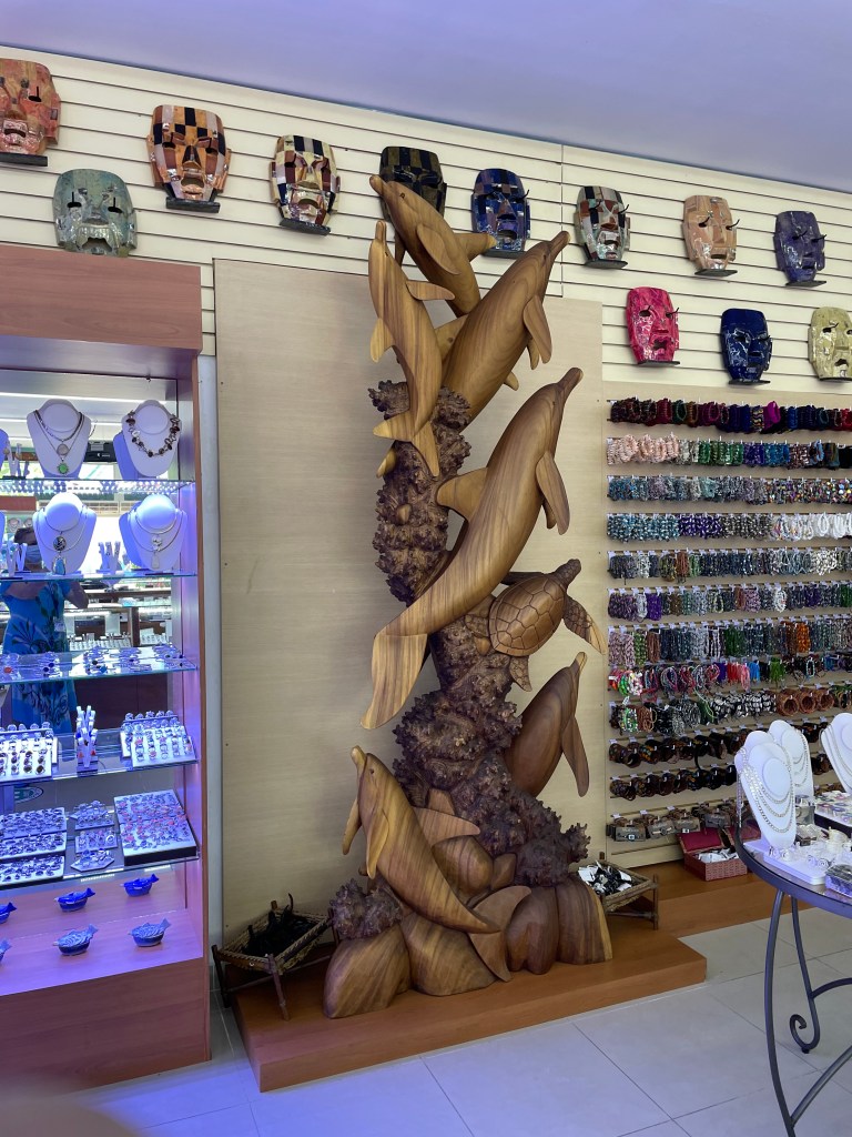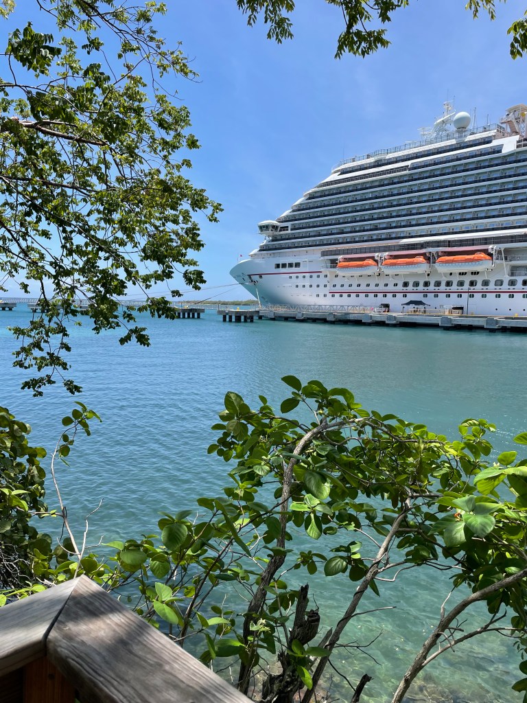 Once we were back at the pier, we walked through some shops but didn’t buy anything. We were ready to get back on the ship. I took some more pictures of our port neighbor before we boarded.