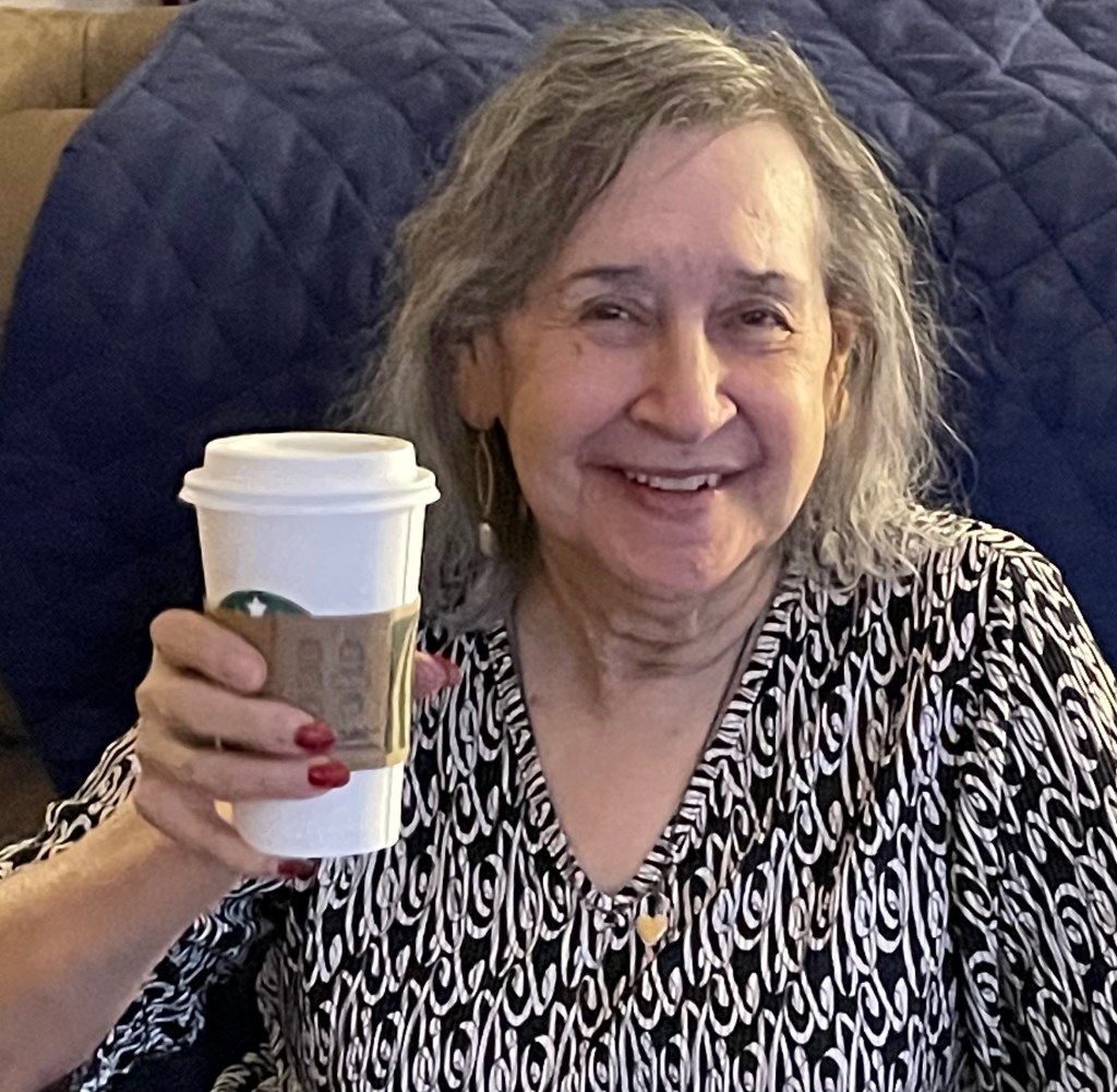 But first, I want to get my mom a White Chocolate Mocha from Starbucks. We talked about my upcoming cruise and I reassured her we would be stopping by to see her on our way out of town. I made a note on her calendar showing her when Jim and I will be gone. I also told her that I would be changing her door decorations when we return.