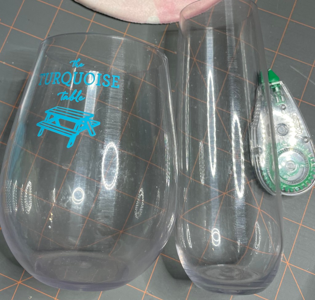 plastic reusable wine glasses and champagne flutes (both are stemless, LOL).