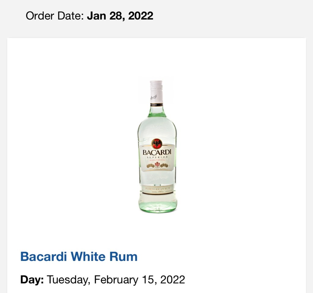 Before I was able to schedule our COVID tests and do our online check-in, I ordered a couple of items to have in our stateroom. Once I found out that you can order liquor and/or wine to have in your stateroom, it has been a must do for us. Not because we drink a lot, but because we are on vacation and we like to have a cocktail or two in our stateroom. This has truly kept my Sail N Sign card from sinking on many ocassions! I also purchased some water for our stateroom as well.