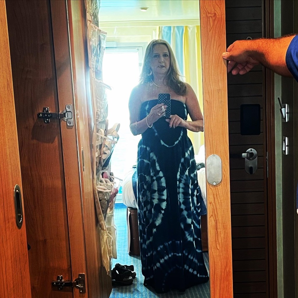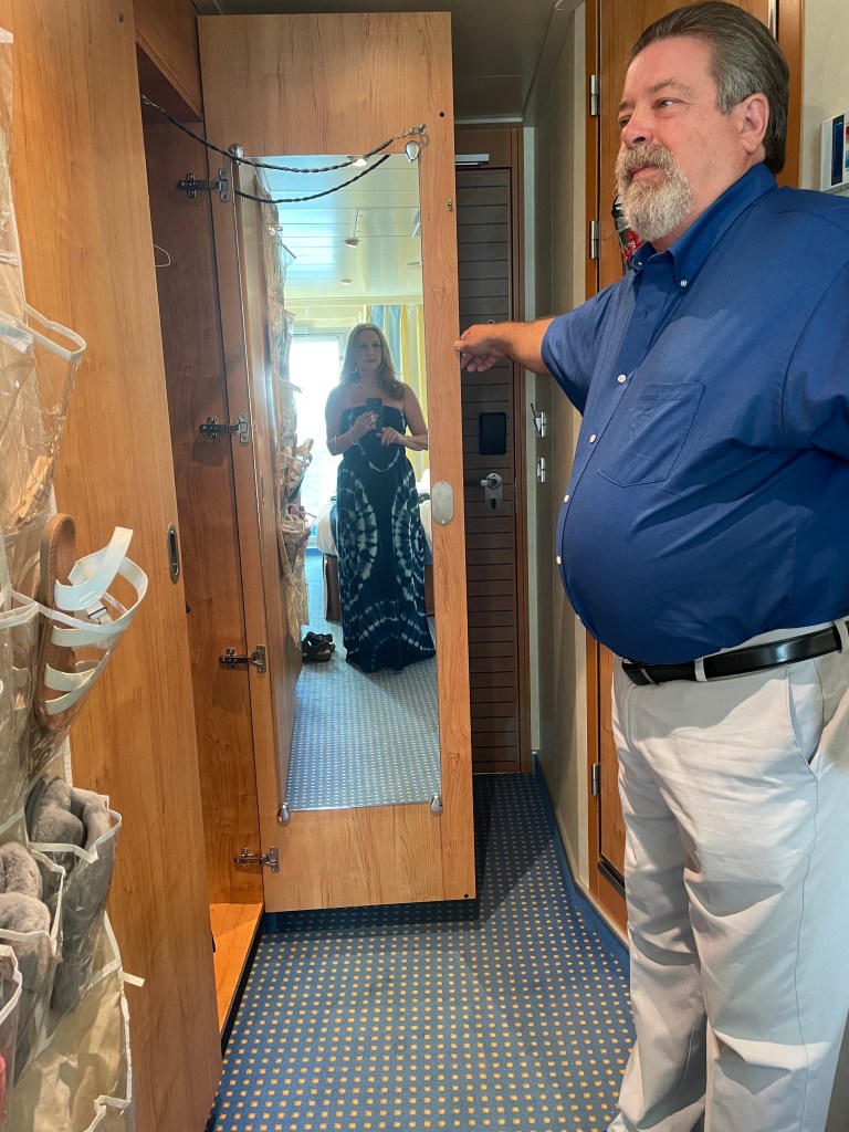 After lunch, we walked around before we returned to our stateroom to watch us sail away and great ready for dinner. Tonight is the second Cruise Elegant Night so that means I have another opportunity to dress up a bit, but not too much!