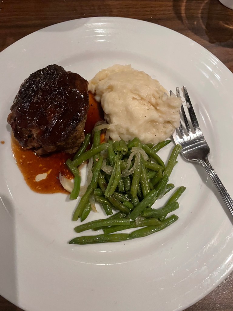 Breads for tonight were Baguette and Multigrain Cranberry with Whipped Butter, Olive Oil & Balsamic, and Garlic and Herb Cheese. Jim’s appetizer for tonight was Stuffed Mushrooms while I decided on Shrimp Cocktail. Unfortunately, I did not take pictures of the bread, condiments, or the appetizer.