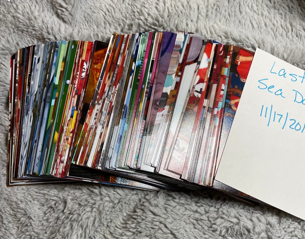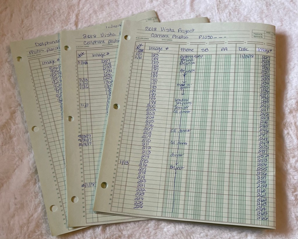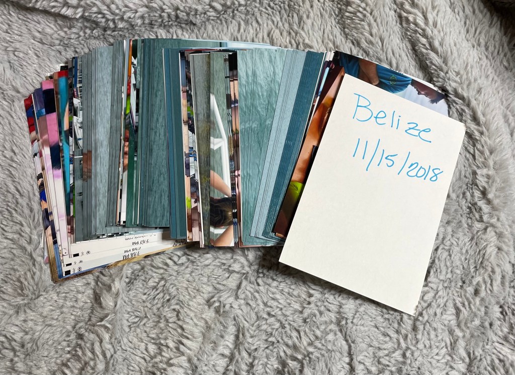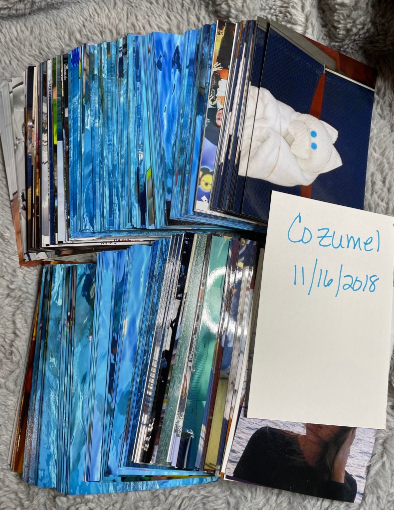 The next thing I did was to sort the photos by the date, if printed on the back of the photo, and image number found on the back of the photo. The image number from the cell phones are different from the ones we took from our camera. Cell phone photos start with IMG_ while our camera photos start with P. Once they were all sorted, a made 3 separate image lists: one for cell phone photos, one for camera photos, and one for the photos we purchased from our excursion to Dolphinaris in Cozumel.
