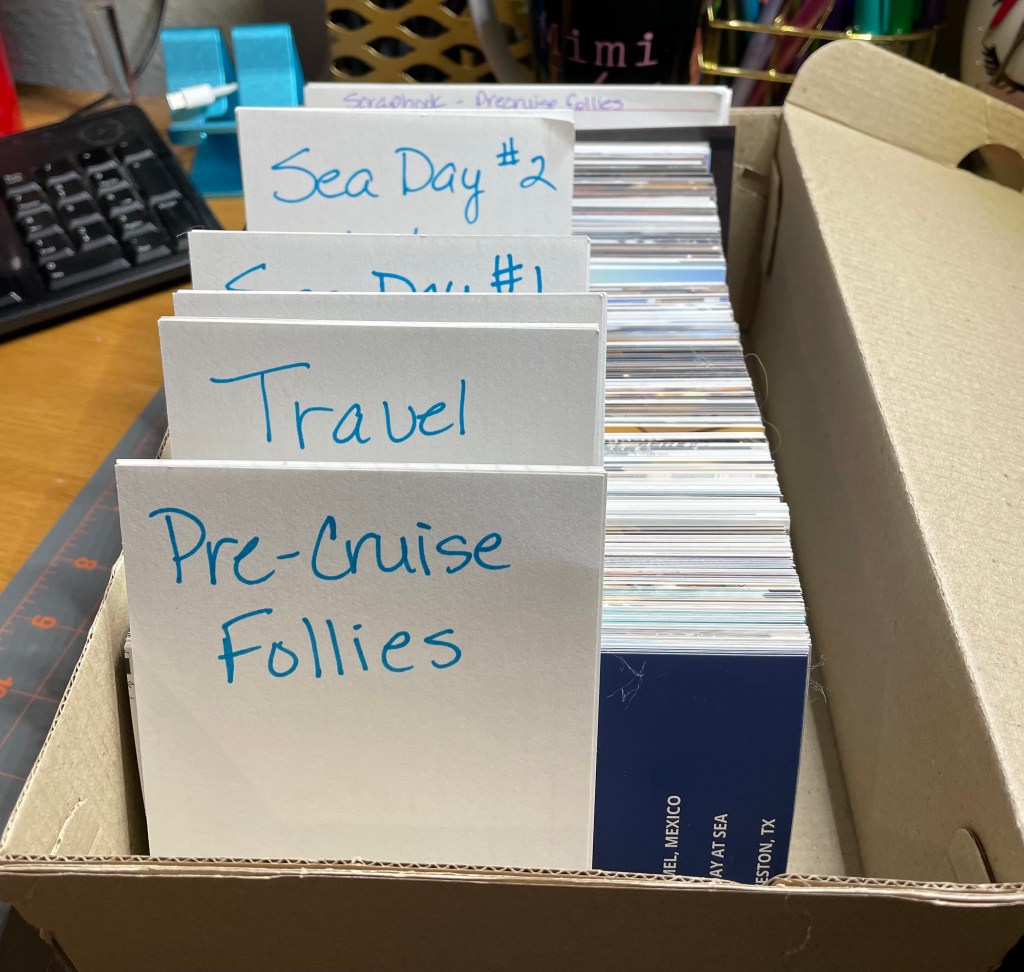 When I started this project, the photos were in the boxes we received them in from Shutterfly. I had already gone through all the photos to determine which area they should be in. And by area, I mean pre-cruise, travel day, embarkation day, and so on. This was a good start, but, obviously, still had a long way to go.