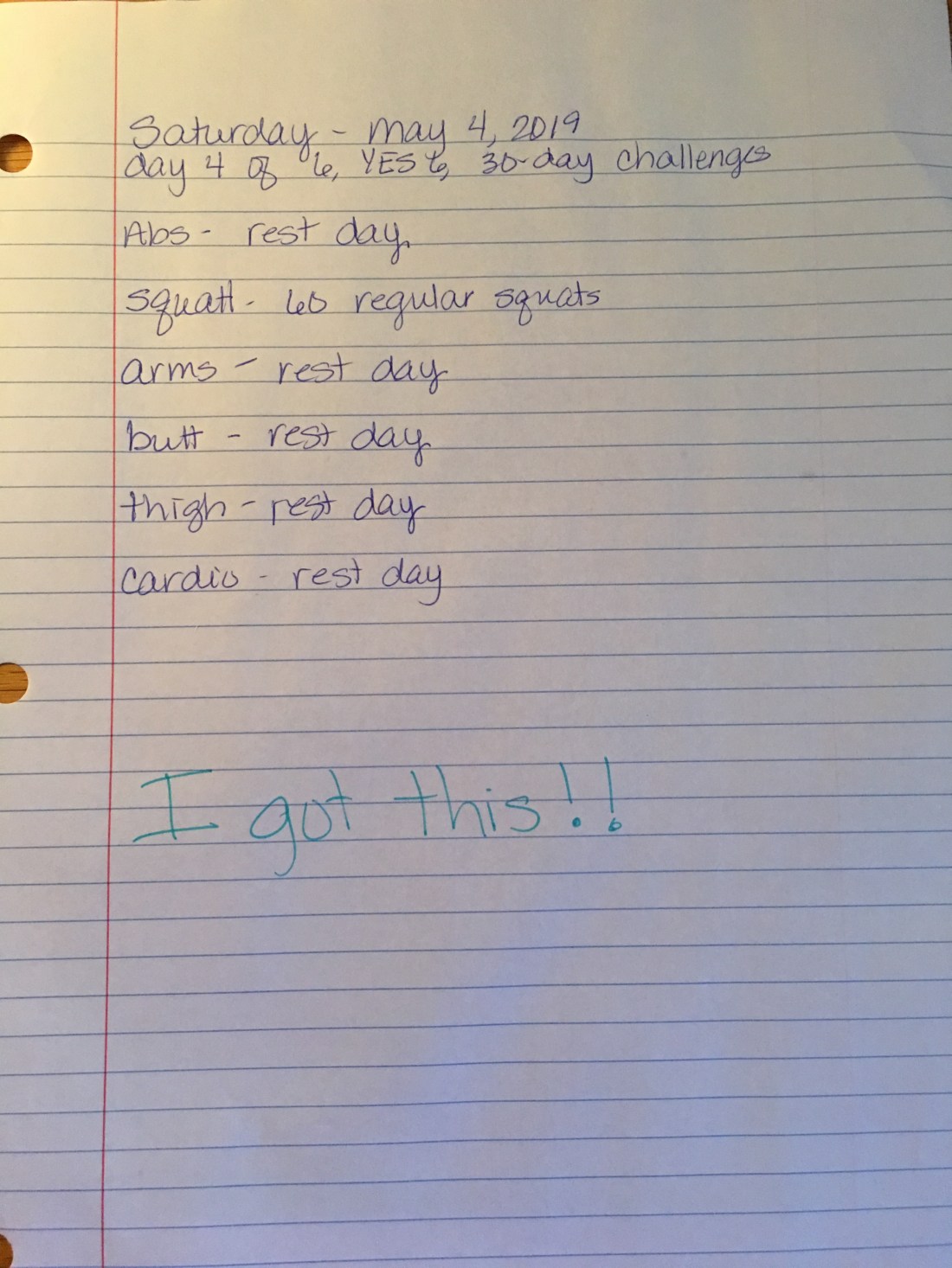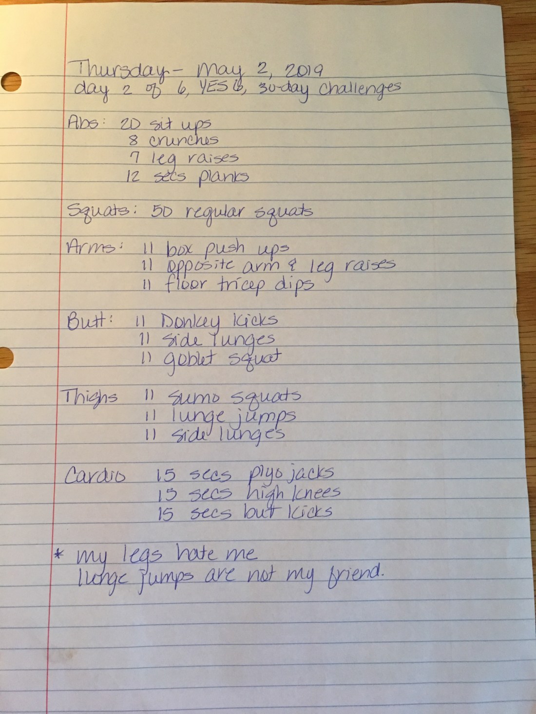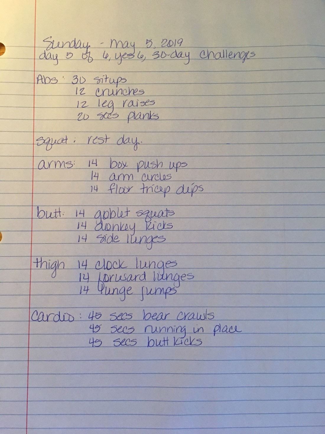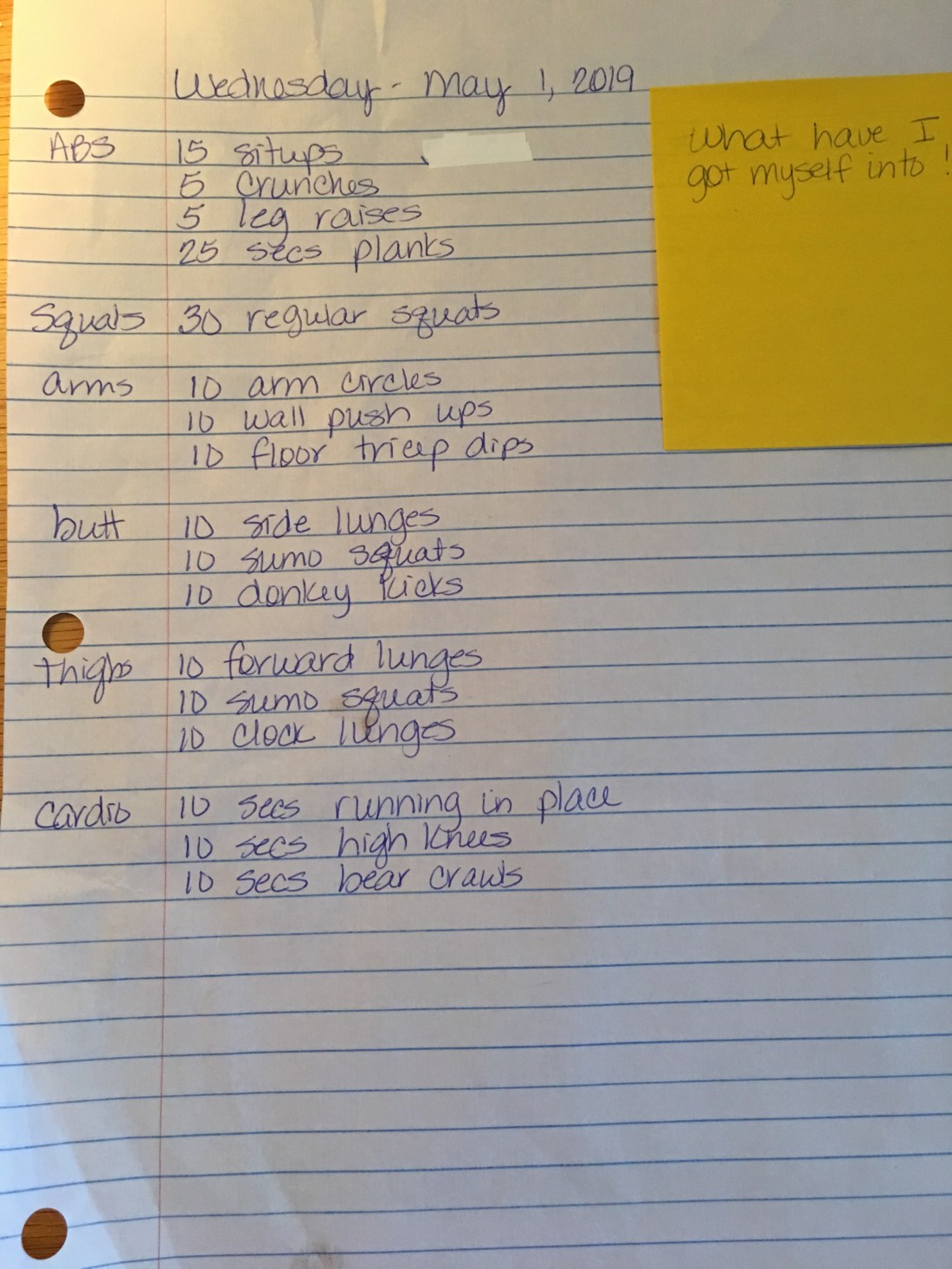 Today’s exercises seemed to be a bit more challenging than previous days. Hopefully tomorrow morning will be better. Today’s challenges included the following exercises:
