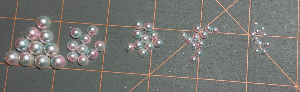 These flat back faux pearl beads were found at Dollar tree. I wonder if I have finally found a use for them. I originally purchased them to use on Christmas frames for my daughter. There are a lot of them so I still might be able to use them for some Christmas frames but first I will consider using them on a mask or two.