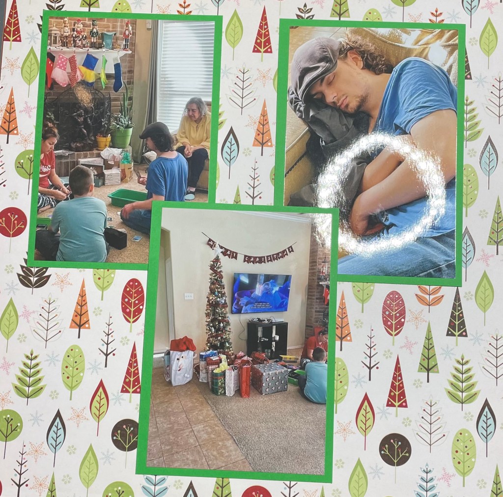 On Christmas morning, we took my mom to Kimmie’s house to be with her family for breakfast and to exchange gifts. This 3-page layout was made on Imaginisce Christmas Cottage Winter Wood collection.
