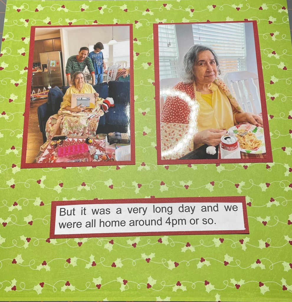 Then we made our way to Wesley’s home for lunch and to exchange gifts with his family. Since he lives a farther distance away from us, she was starting to get tired before we got there. After she ate her lunch, she was ready to go home so she could take a nap. I wish we could have spent more time there. Maybe this year will be different. This layout was made on Imaginisce Cottage Christmas Peppermint Stick collection.