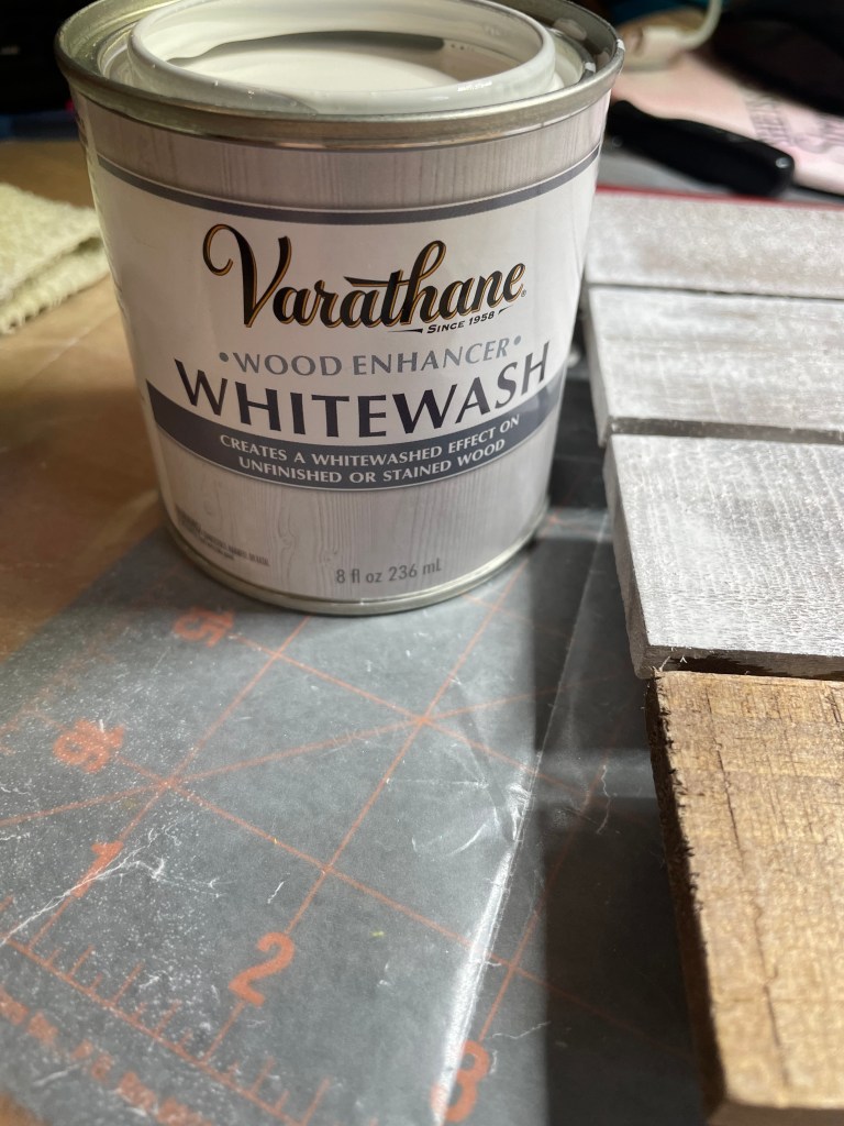 I decided to use Varathane wood enhancer in the color Whitewash to tone down the appearance of the frame and to make sure the embellishments would not get lost in the natural wood tone.