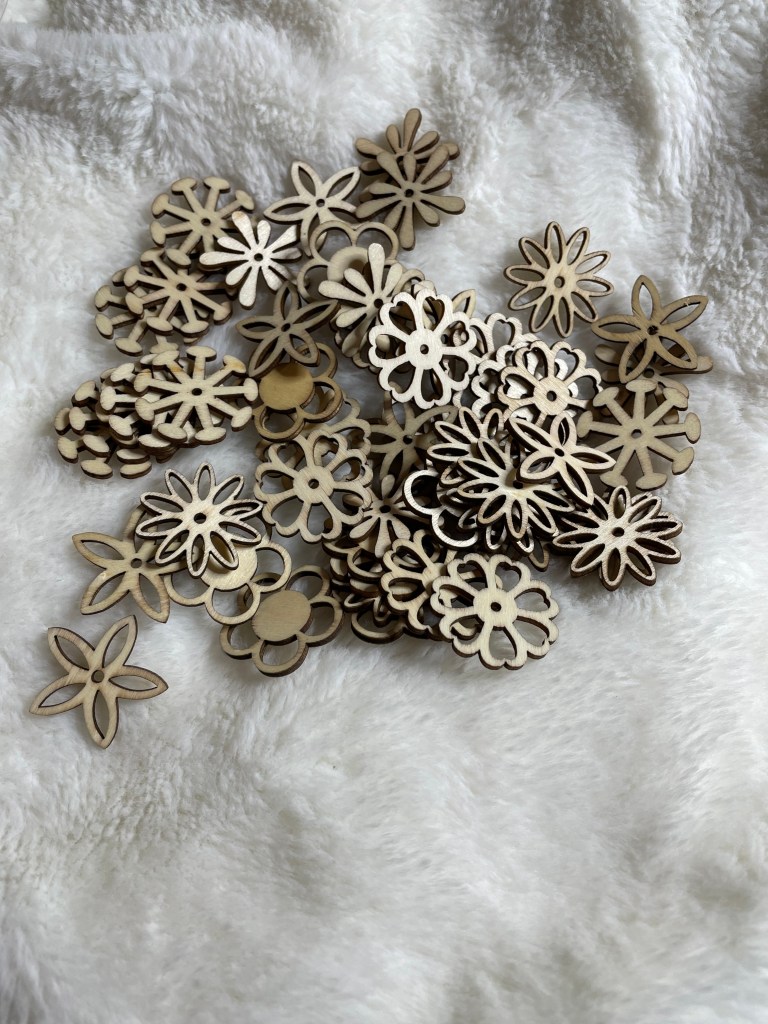 I decided to continue making what I call pre-decoration signs before the actual decorations are put up. So, I’m working on the spring sign but there is some pieces that are made separately. The first part are the flowers that will adorn the sign. I found these flowers on Amazon and the they came in a package of 100. I will be using 6 separate wood flower designs each in their own individual color. At least for this project.