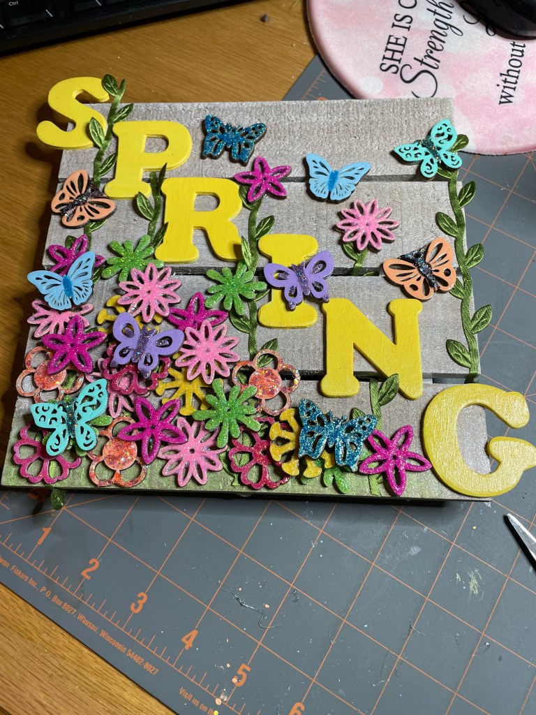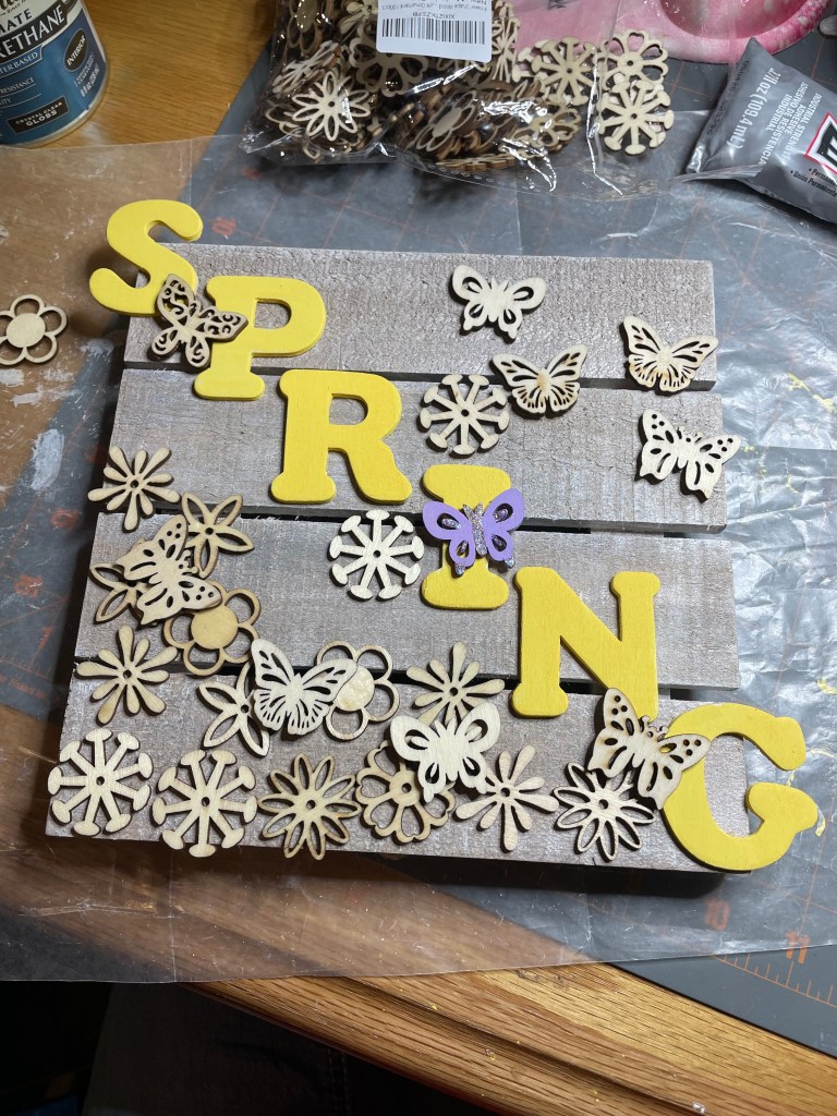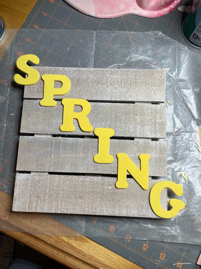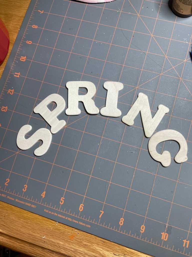 I purchased unfinished wood letters that are 2 inches in height at Hobby Lobby. I initially thought I would spell out SPRINGTIME but once I got everything at home, I realized that would not work and decided I would just spell out SPRING.