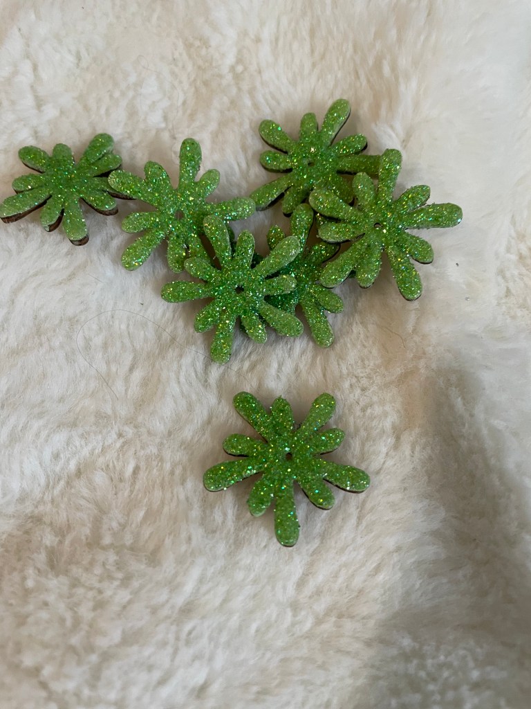 Last, but not least, is flower number six. This flower splash was created using FolkArt matte acrylic paint in the color Soft Apple as the base coat. I topped it with Recollections fine glitter in the color Mint. For some reason, this particular flower looks more like a paint splash than a flower which made me think it would be more appropriate as greenery than what would normally be considered a flower color.