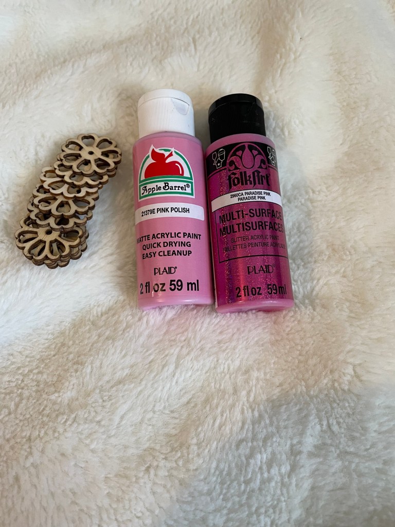 Group 1 paint color is Anita’s All Purpose Acrylic Craft Paint in the color Princess Pink.