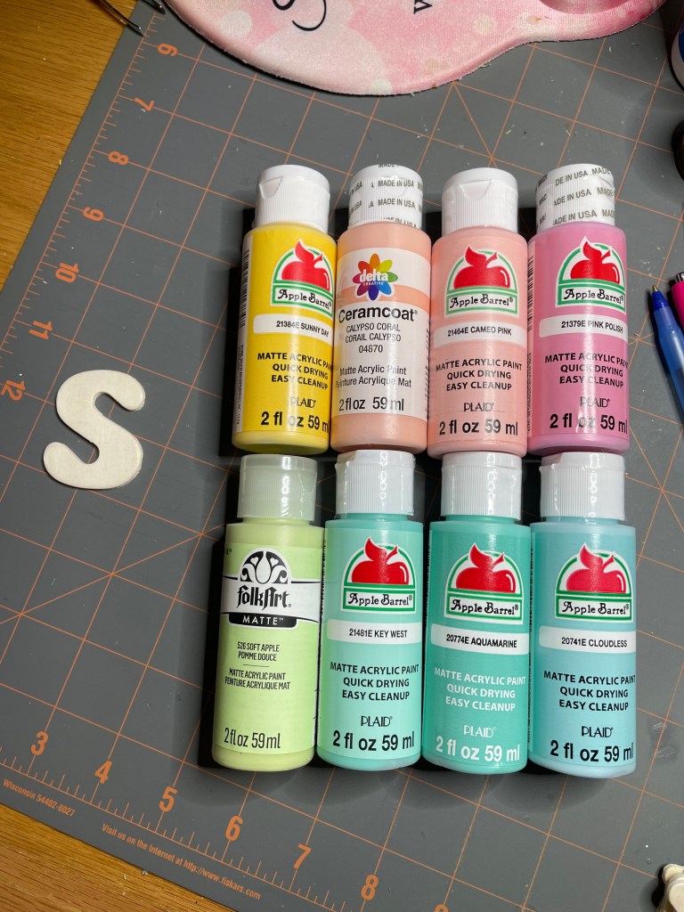 I was not sure what color I wanted to paint the letters since there are so many pastel colors that I thought I might use. I even thought about using a different color for each letter.
