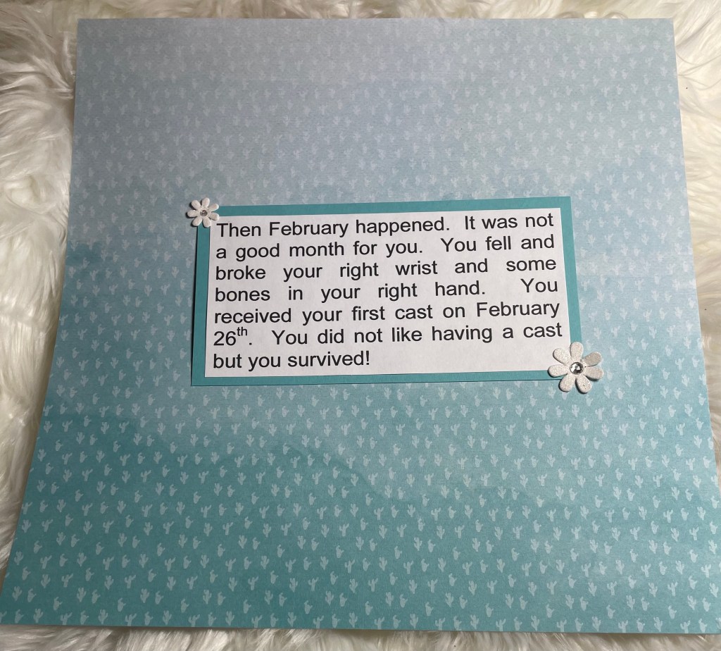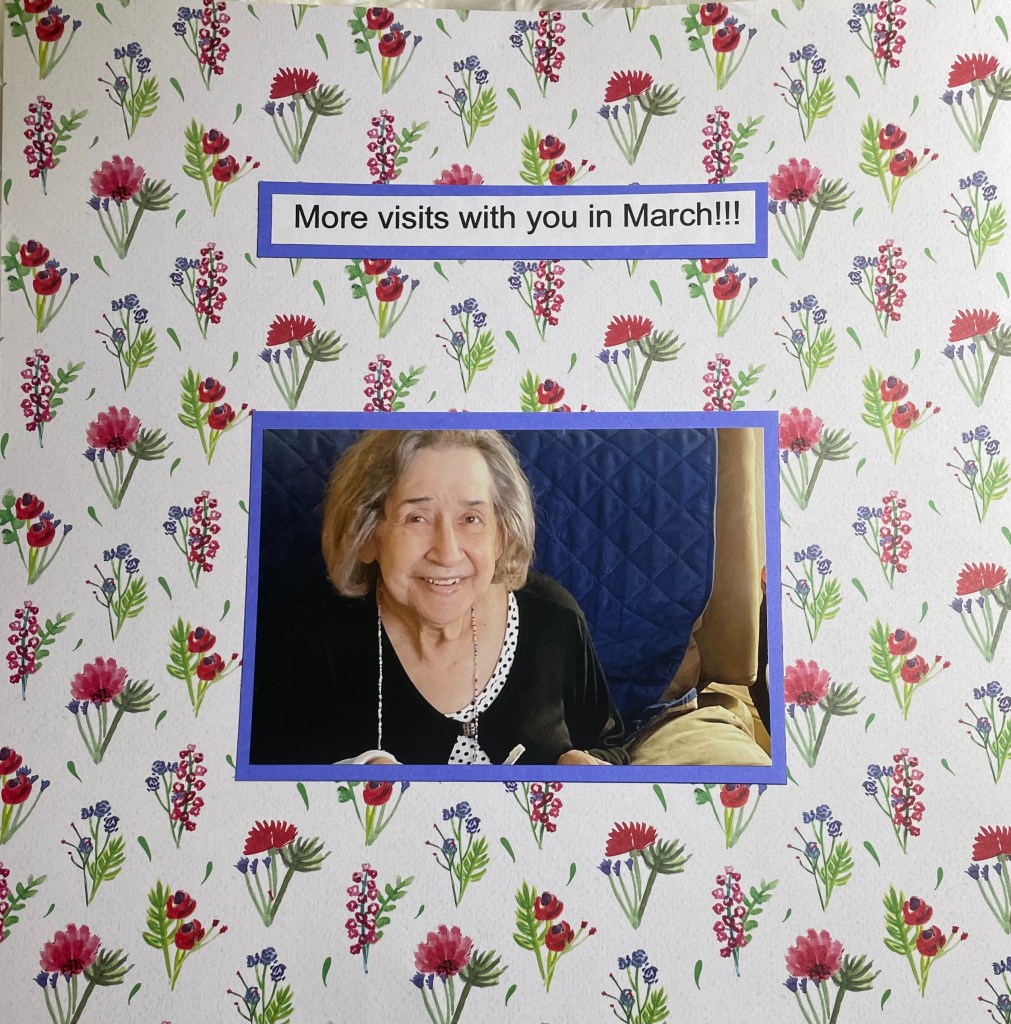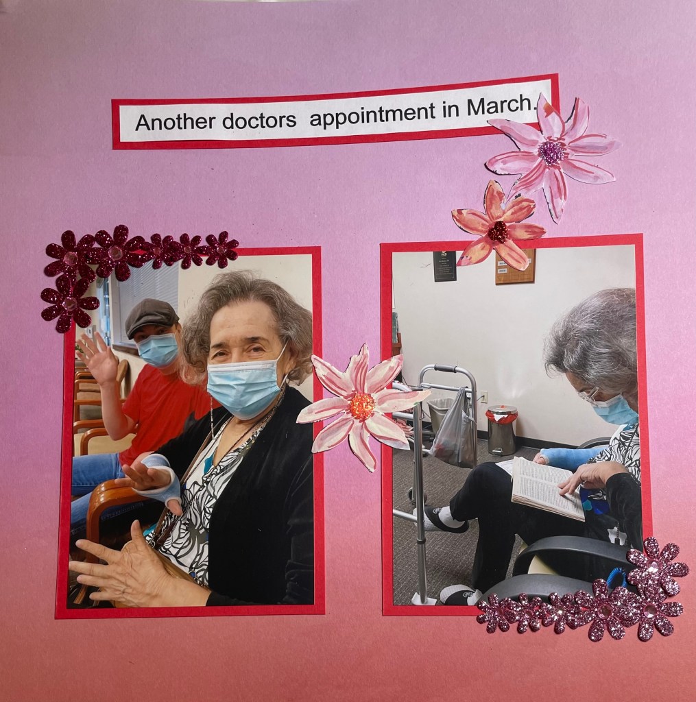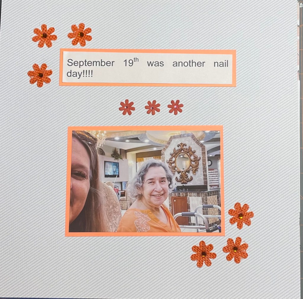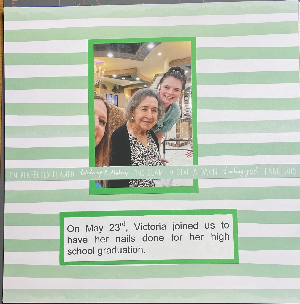 Hello and welcome back to another installment of simple scrapbook pages for my mom. As I have mentioned before, my mother resides in an assisted living facility and she has vascular dementia. I have decided to make her an scrapbook album to show her what she did when the facility was not in lockdown. I am making all the pages simple so she can better concentrate on the story, not a lot of embellishments. Although I’m sure she would like that as well.