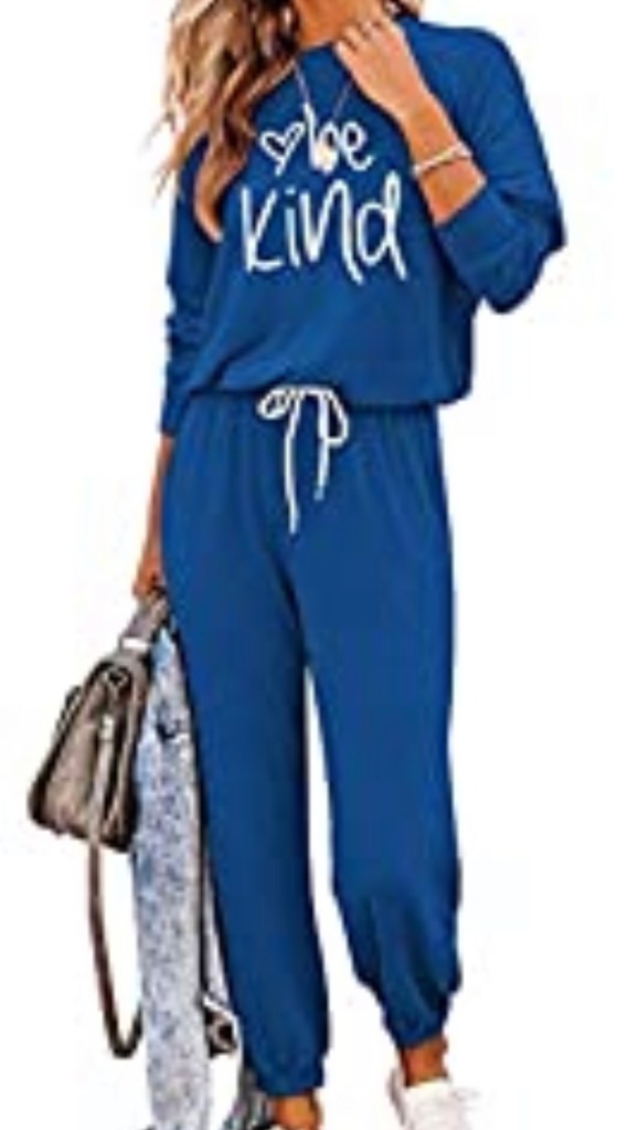 I other two outfits I’m considering are long sleeve sweat suite/loungewear.; The one that says “Be Kind” is a thicker material than the other one. Both are comfortable.
