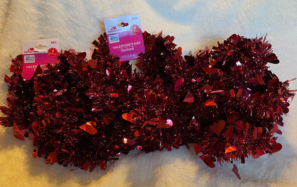 Now that the wreath is complete, I will spray some spray starch of each section to make the fabric stiff. By doing this, my hope is that the fabric strips will stay in place better. I’m using some spray starch I found at Dollar Tree.
